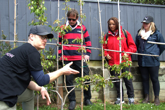 “It’s a very different way of thinking about fruit trees,” says Carl Freeman, horticulture tutor at WITT. “We’re training the trees into a structured wall shape, which makes every branch count. It’s about designing a productive, sustainable tree from the start.”