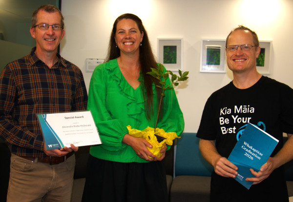 Caption: Alexandra McDonald receiving her Special Award for Top Student with Simon Cayley (Bishop's Action Foundation) and Carl Freeman (WITT tutor).